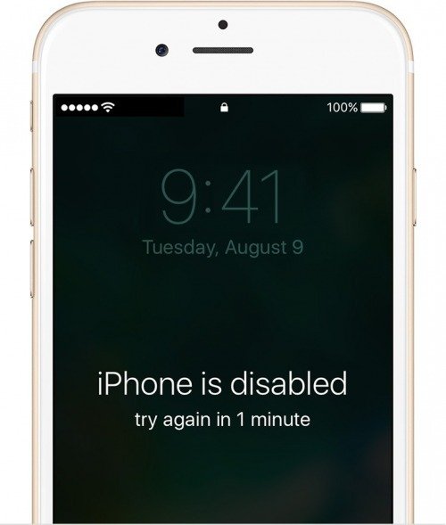 - Nine incorrect entries – iPhone is disabled and asked to try again in 60 minutes